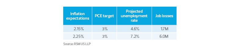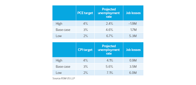 To reach the 3% base case in terms of PCE, the economy would have to shed 1.7 million jobs to get to a 4.6% unemployment rate.