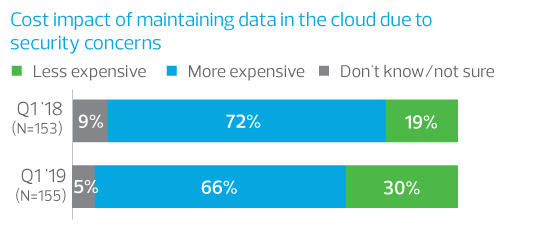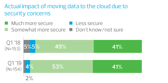The RSM US Middle Market Business Index data demonstrates the gradual migration of middle market data to the cloud. The survey shows that 38 percent of respondents moved data to the cloud as a result of security concerns in the last 12 months.