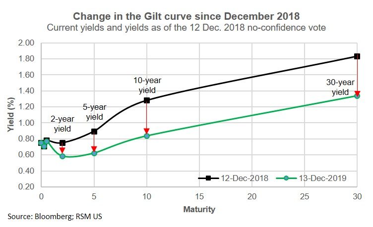 The pound — which had been somewhat unresponsive in the run-up to the election — strengthened dramatically in the overnight markets once it became apparent that Johnson had been given a clear victory and Jeremy Corbyn announced his stepping down as Labour’s leader. The pound then had to hang onto its gains as the day progressed.