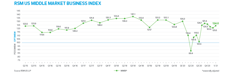Despite the challenges posed by the most intense phase of the public health crisis, sentiment among middle market business executives rose in January, according to the proprietary RSM US Middle Market Business Index.