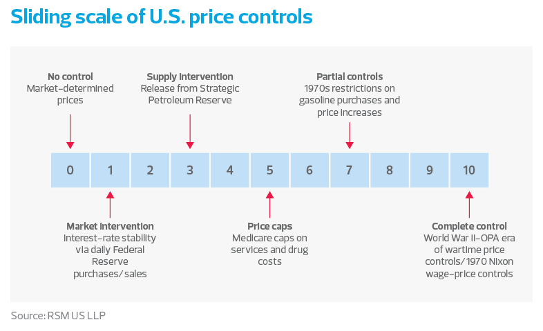 Price controls should be best understood as the range of costs influenced by various degrees of government intervention into markets.