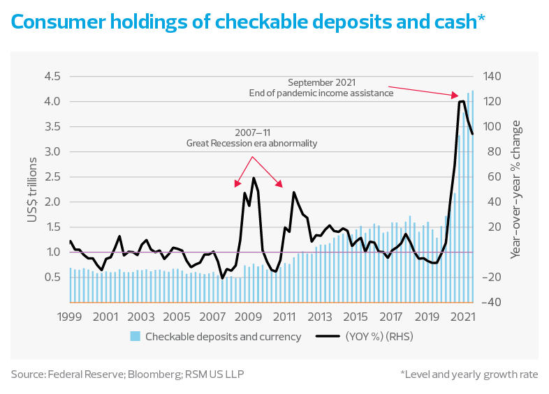 In our estimation, that accounts for the persistence of savings still to be spent by higher-income households. It also implies that there is policy space to address the needs of low-income workers who are still dealing with the economic fallout from the pandemic.
