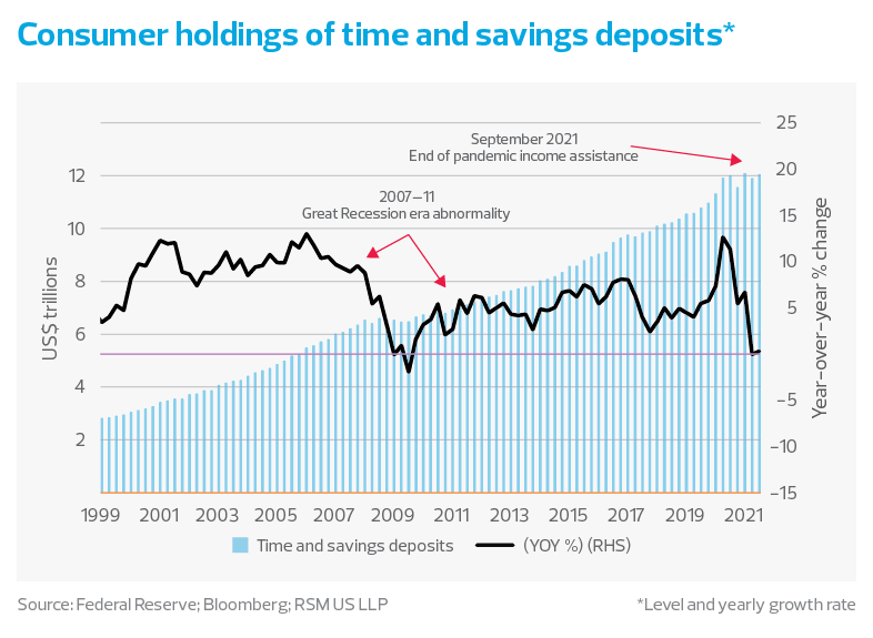 But in 2020, savings jumped as government support boosted household balance sheets. Savings has remained at that higher level, not only because of the threat of the pandemic but also because of the limitation of spending opportunities during the pandemic.
