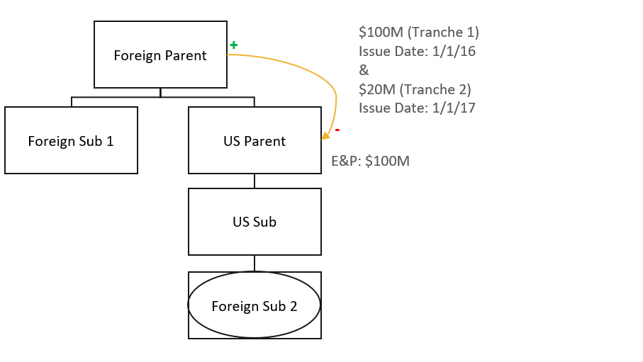 As mentioned above, utilizing the E&P Reduction, the aggregate amount of any distributions or acquisitions made by a covered member is generally reduced by the covered member's expanded group earnings account. In this instance, US Parent has $100 million in its expanded group earnings account. However, since the distribution was made prior to Foreign Sub 2’s joining of the U.S. consolidated group, that amount is unavailable to offset any amount of the distribution.